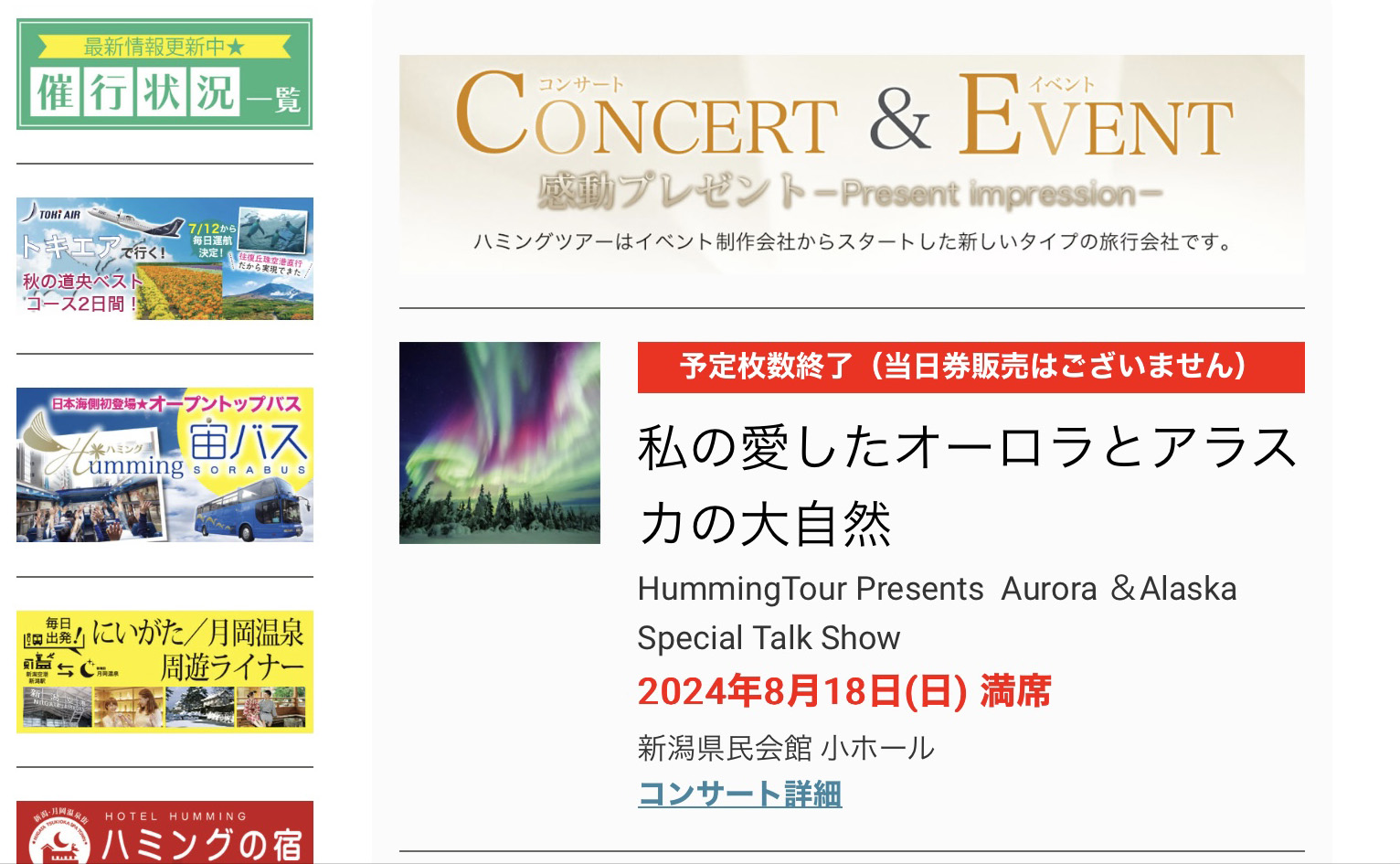 ハミングツアー企画(8月18日)のトークイベント 300席満席です~ ハミングツアー企画(8月18日)のトークイベント 300席満席です~ 明日は新潟で赤川花火・テンションMAXです~ ・・ ワクワク・感謝・ALASKA・!😍 共有:FacebookPinterestTwitter