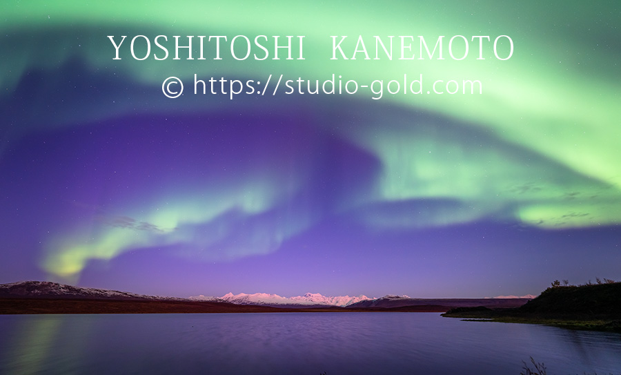 秋のデナリ、タングルレイクから望むオーロラ・・静かで、、刺激的な光景でした〜・ワクワク・感動・ALASKA・!😍