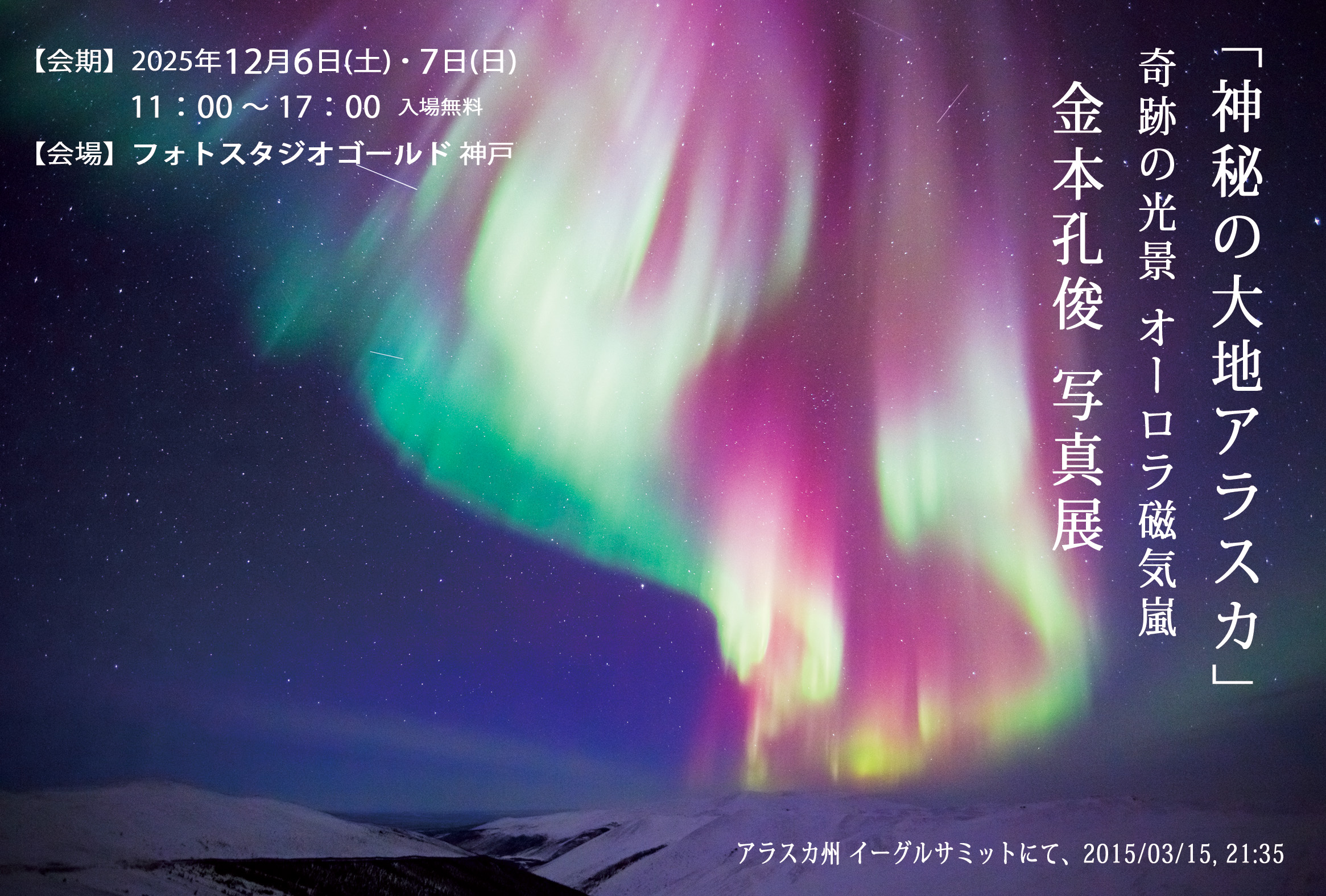 金本孔俊 写真展「オーロラ 磁気嵐」 金本孔俊 写真展「オーロラ 磁気嵐」今回は2日間だけですが時間がある方は気軽にお越しくださいね〜・・ ワクワク・感動・ALASKA・!😍 共有:FacebookPinterestTwitter